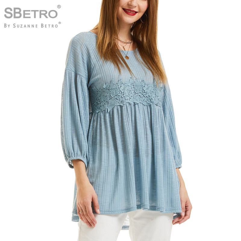 satin al sbetro suzanne betro tarafindan kadin tozlu mavi pointelle kazak orgu 3 4 balon kol dantel trim babydoll tunik ust tl284 79 dhgate comda