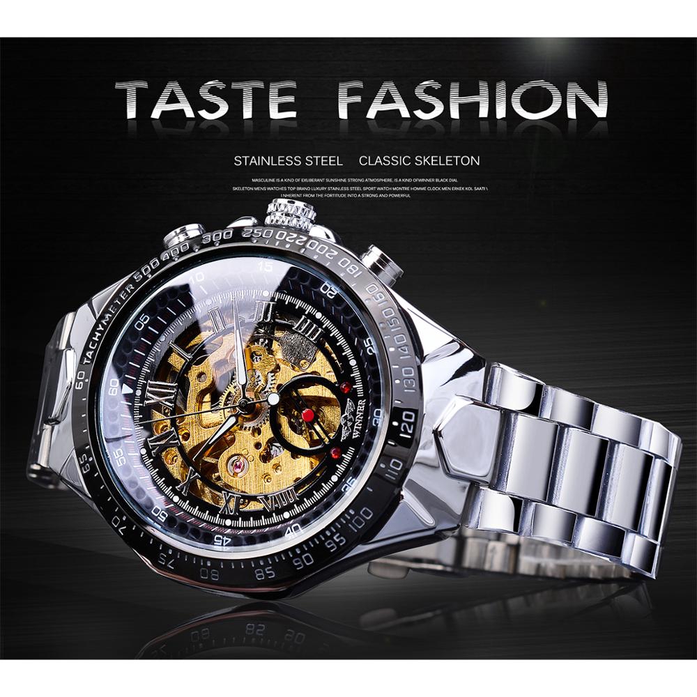 winner black date automatic watch leather band business sports watches top brand luxury men s fashion casual mechanical clock