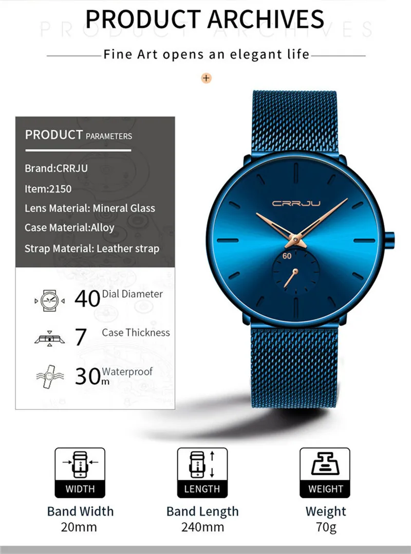 crrju watches fashion mens dress watches brand luxury quartz watch men casual slim mesh waterproof sport watch erkek kol saati wish