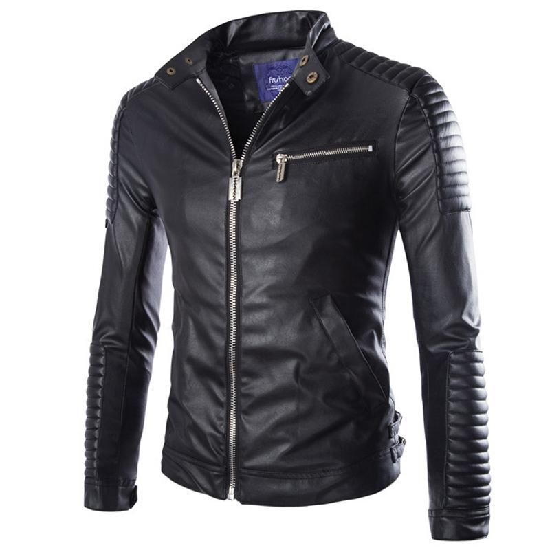 erkek uzun kollu ceket arti boyutu mavi pu deri ceket genclik rahat standi yaka motosiklet deri ceket taklit kurk erkek