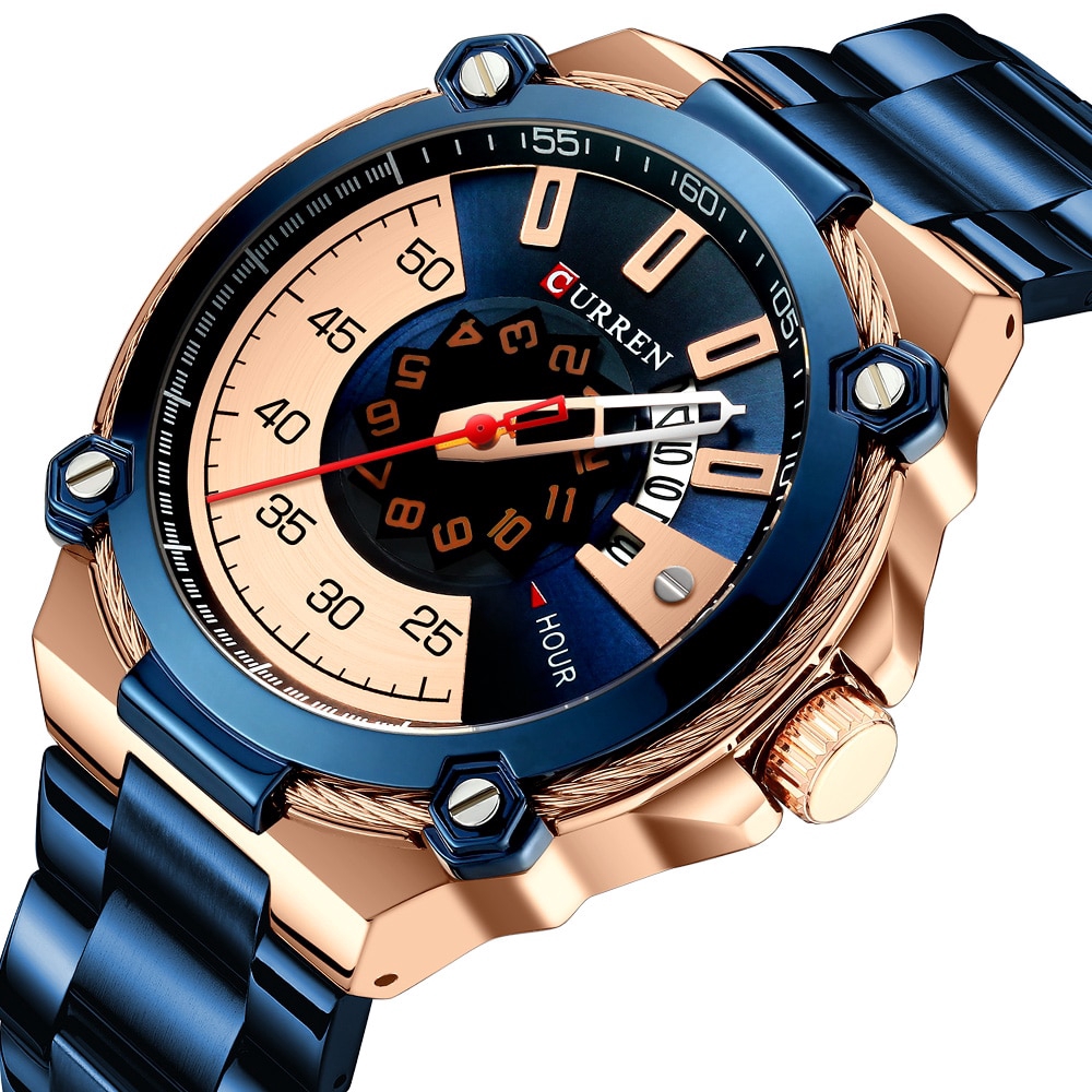 curren jam tangan mewah chronograph anti air strap kulit