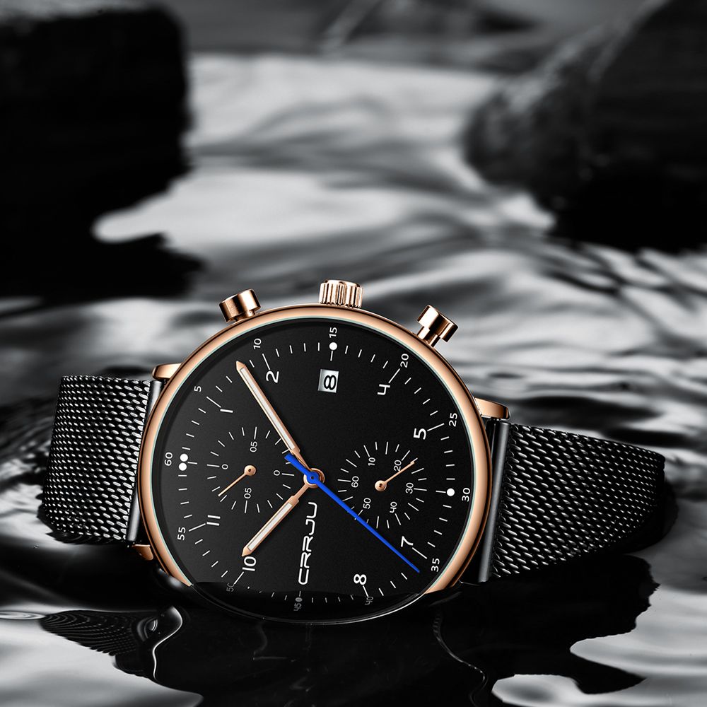 crrju brand blue dial business watches for men stainless steel mesh band fashion quartz watch slim clock male erkek kol saati crrju watch