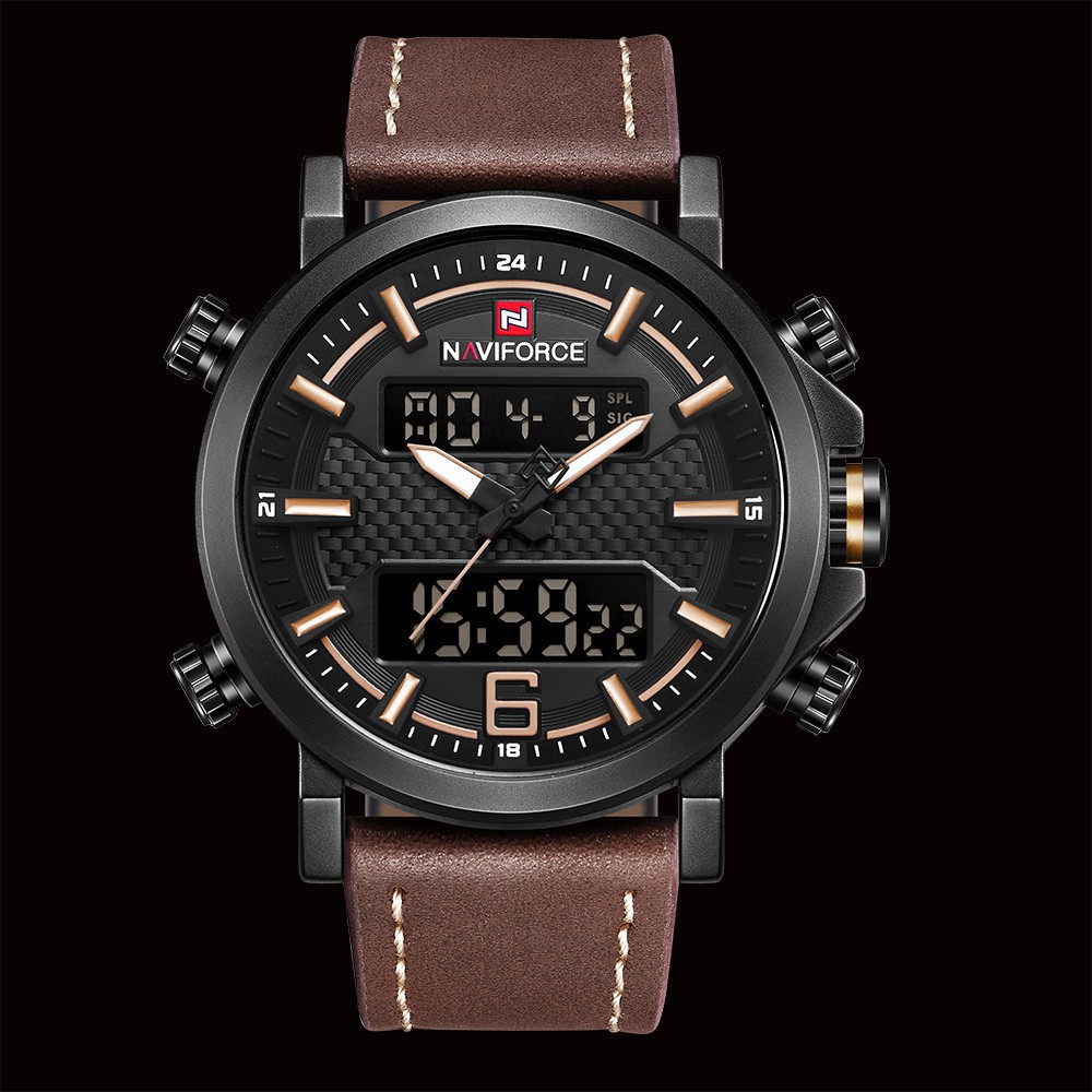 naviforce men watches nf9164 top luxury brand men leather sports watches naviforce men s quartz led digital clock waterproof military wrist watch