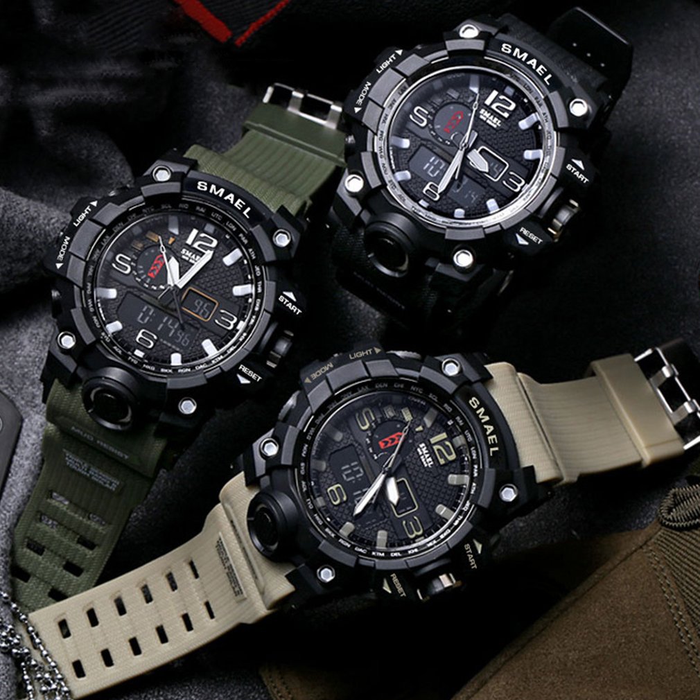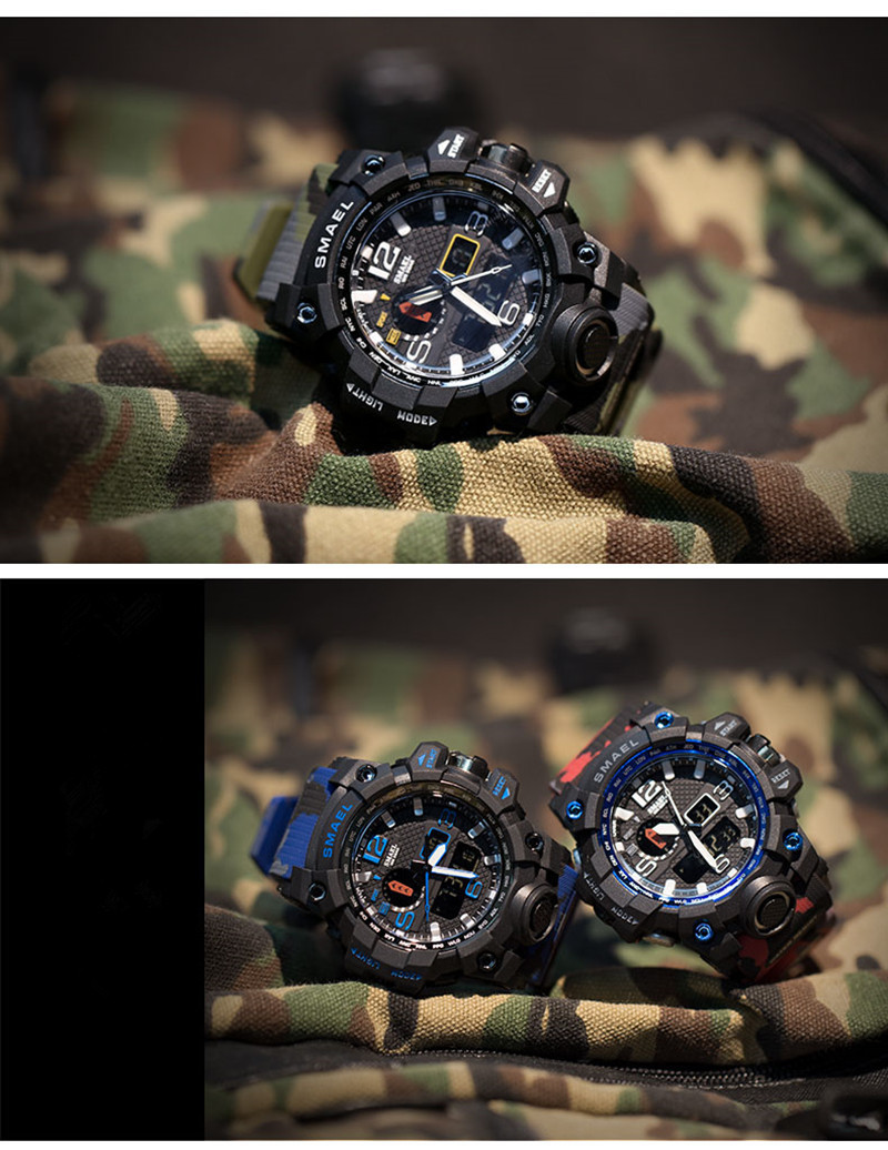 smael brand sports watches men dual time camouflage military watch men army led digital wristwatch 50m waterproof men s clock